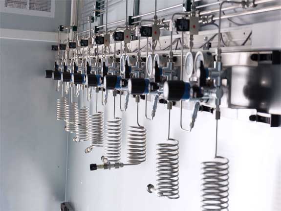 Laboratory gas mainly includes non-flammable gases (nitrogen, carbon dioxide), inert gases (argon, helium, etc.), flammable gases (hydrogen, carbon monoxide). Highly toxic gases (fluorine, chlorine); Composition of combustion-supporting gas (oxygen). Other gases, except non-flammable and inert gases, shall not be used in the laboratory. It can be connected to each laboratory through the air duct. General gas phase chamber is equipped with helium (He), nitrogen (N2). The gas chamber is equipped with nitrogen, hydrogen and oxygen. The connecting fittings of the hydrogen pipeline should be welded after connecting. Leakage is strictly prohibited. All pipelines must be tested for air tightness after installation and must be deoiled before use. Due to the small pipe and small pipe spacing, the installation process can be adjusted according to the situation on the spot to ensure the spacing is not less than 45mm. Flammable and explosive gas and inert gas are in the same cabinet when gas bottle is used, and two flammable gases are prohibited to be in the same cabinet. 1. In order to ensure safety, all kinds of gases used in the experiment should be stored away from the working point in the explosion-proof room if possible. Otherwise, the gas cylinder safety cabinet with automatic alarm function should be set for storage. 2. Negative pressure exhaust system shall be designed to ensure that toxic and harmful gases are not leaked in the room. According to the proportion of the room size, the corresponding number of ventilation fans with reverse wind valves should be designed to make the air flow smooth and keep clean. 4. Every room should be designed with air vent with filter device.
